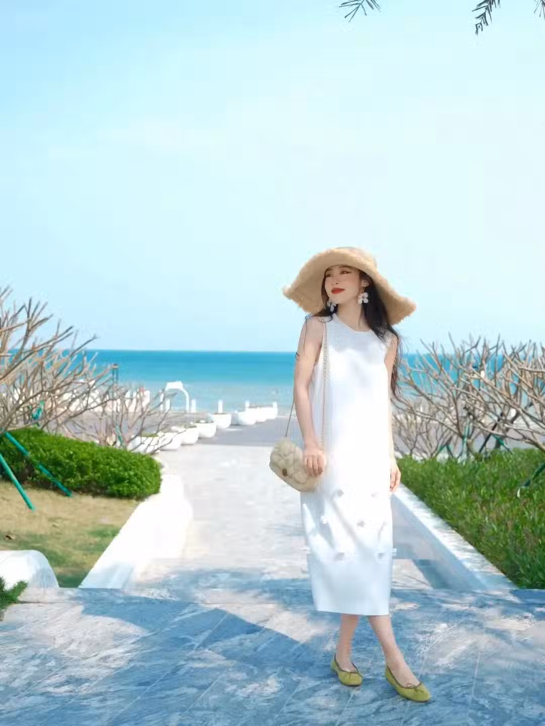 穿裙子拍照,大家一定要去拍一個側身的姿勢,讓自己側身站立,然後身體稍微往後仰,抬起一隻手假裝撩頭髮,配合微微笑看著鏡頭,真的能把裙子的氣質一瞬間展示出來,大家快去拍,又美有氣質。