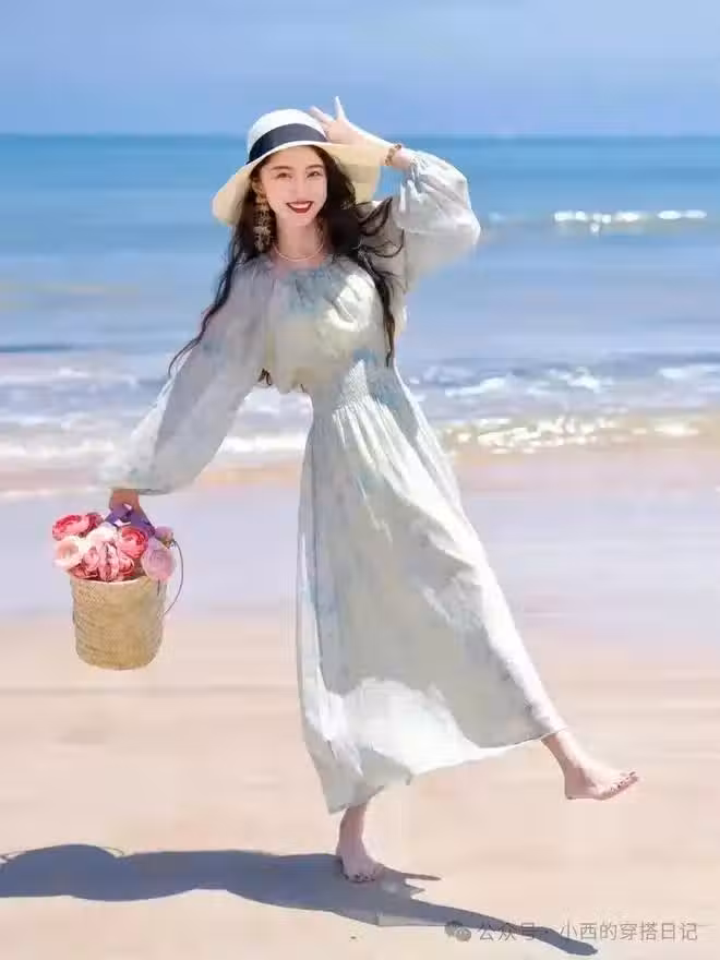 寬鬆的牛仔褲與柔軟的淺棕色T恤簡潔而舒適,適合輕鬆的日常穿搭。細節處的金色項鍊和手環添增了一抹精緻感,而自然的髮型與恬靜的環境相得益彰,營造出一種休閒而不失格調的氛圍。▼