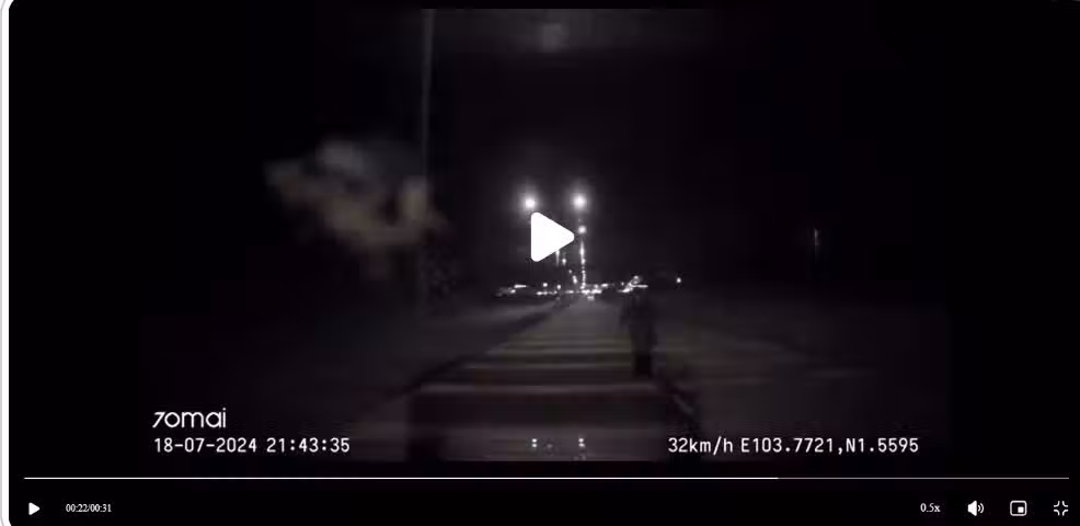 一名事主把這段長達31秒的行車記錄儀畫面分享在「小紅書」上,畫面顯示事發時間為昨晚9時43分,事主行駛在右邊車道。