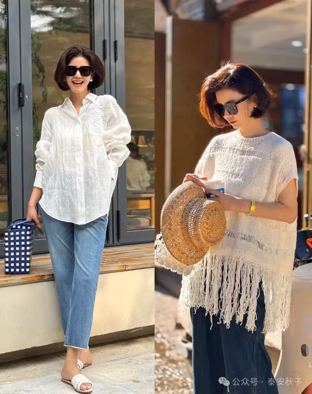 入夏之後,又火了一種穿搭叫:「小衫+涼鞋」:4、50歲女人穿上真的太美了!