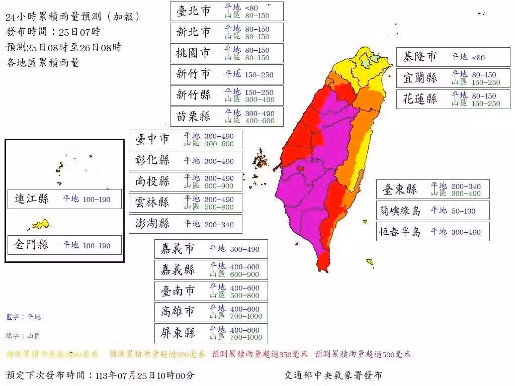 氣象署指出,雨量達規定放假標準者,分別有台東、新竹縣市、苗栗、台中、彰化、南投、雲林、嘉義縣市、台南、高雄、屏東,以及離島澎湖。