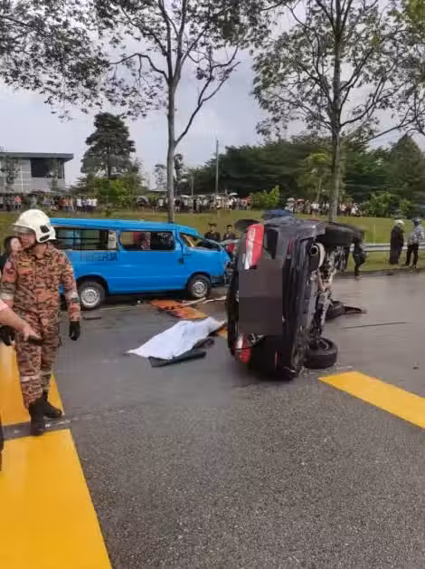 疑撞擊猛烈,豐田Camry轎車側翻,一名男乘客當場身亡,司機及另一名女乘客則受傷。