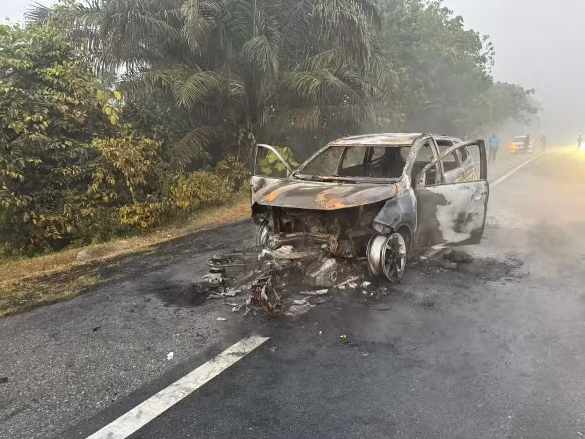 他指出,第二國產Aruz休旅車是與Modenas摩哆直接碰撞,隨後摩哆起火燃燒,也造成休旅車一併起火。