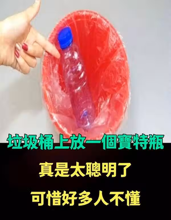 今天才知道,垃圾桶上放一個寶特瓶,真是太聰明了,可惜好多人不懂…