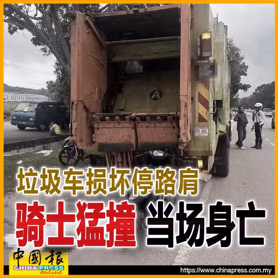 51歲摩哆騎士,從後猛撞因為損壞而停在路肩的垃圾車後部,當場頭部受重創身亡。