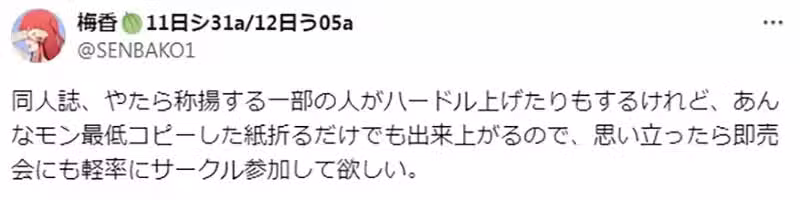 在這次的Comic Market(C104)即將登場之際,有位暱稱「梅香」的日本同人繪師,發文聊起了同人誌的初衷,隨即引發熱烈反響……