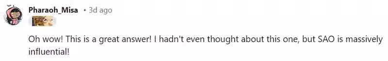 「這幾天年我早就跟很多人戰過這個議題了。《刀劍神域》就是一部推動AR/VR領域的熱潮,以及時下異世界流行的革命性作品。」