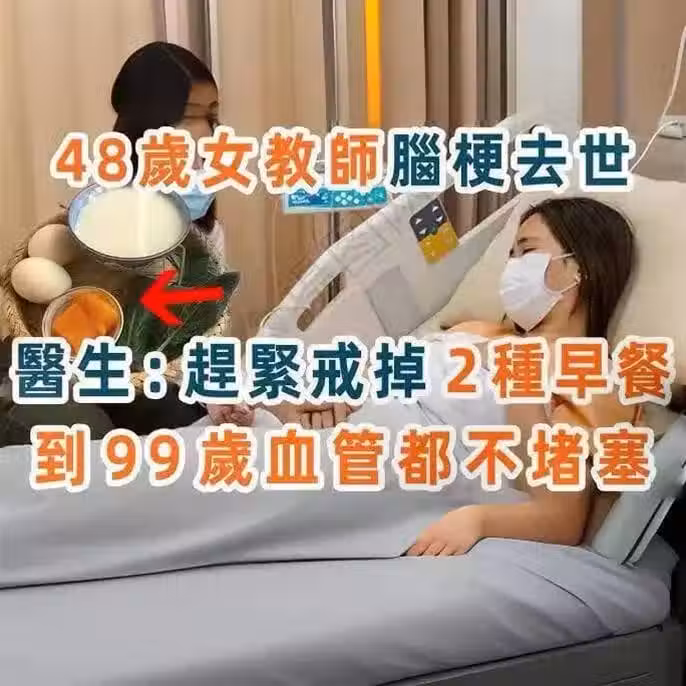 48歲女教師腦梗離世,醫生:天天吃2種早餐,血管很容易堵塞!!!!!