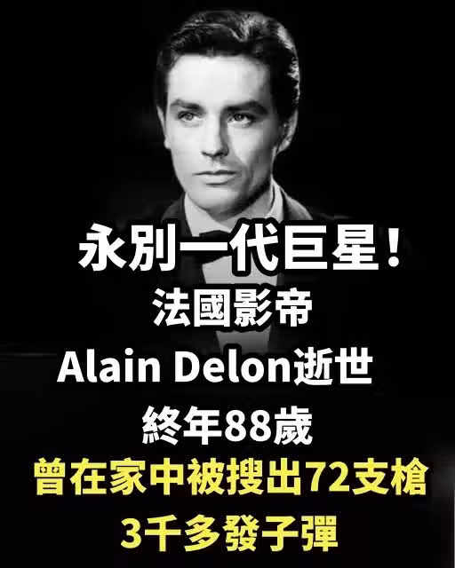 永別一代巨星!法國影帝Alain Delon逝世 終年88歲!曾在家中被搜出72支槍丶3千多發子彈