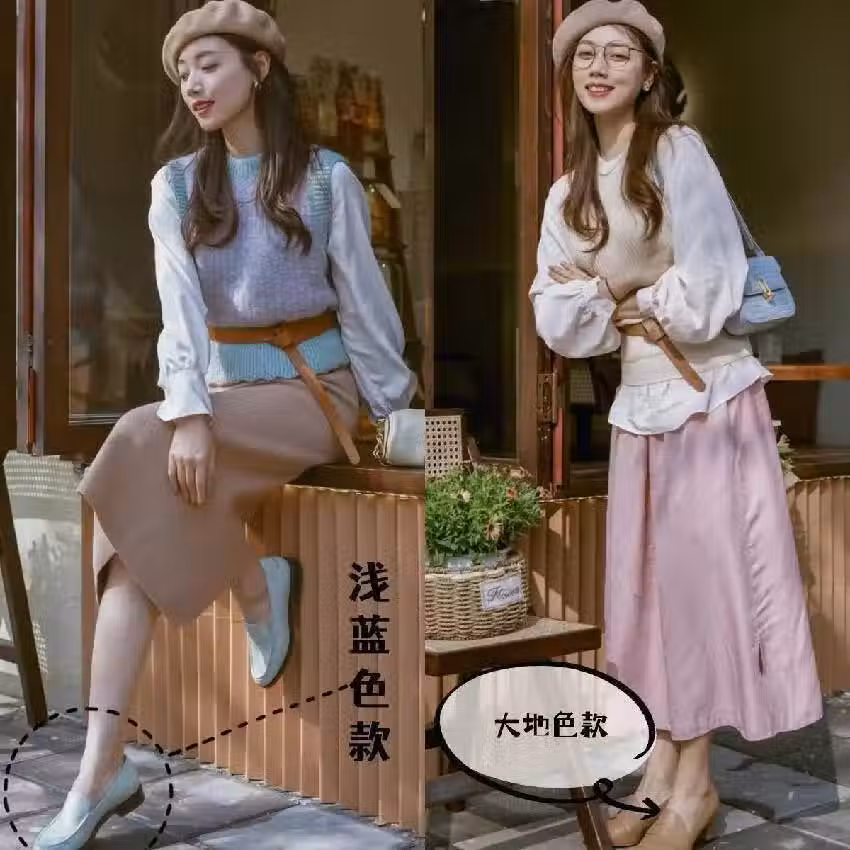 3) 樂福鞋樂福鞋整體搭配氣質可鹽可甜,不管是正式場合還是日常出街選擇它來搭配都很合適。