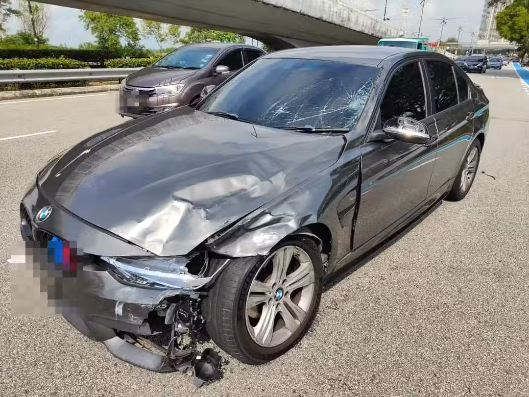 (新山7日訊)夫妻共乘摩哆外出,途中疑切換車道時,被開著寶馬轎車的年輕司機撞上,結果夫妻被拋飛至馬路中央,釀成一死一傷。