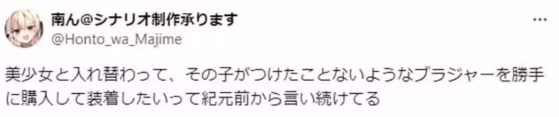 「認真來說,假如我真的跟美少女交換身體,就算一個星期不洗胸罩好像也沒差。反正那又不是我的身體。」