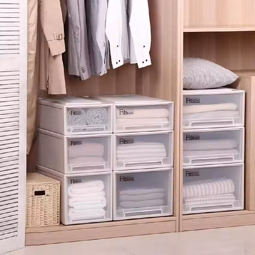 5.抽屜式收納箱衣櫃內掛衣區底部的空間一般都是閒置浪費的,直接在此疊放衣服,又會顯得十分凌亂。