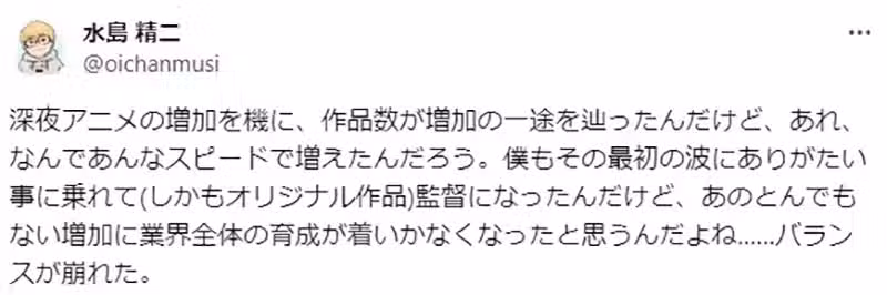 《動畫導演水島精二》坦言新番動畫真的太多了 建議砍半即便自己失業也無妨