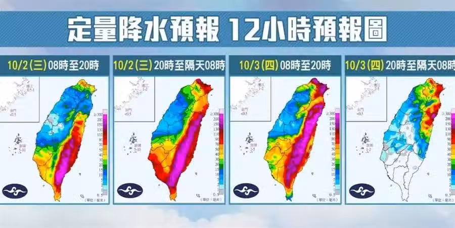 粉專提醒,全台灣停班停課,南部風雨逐漸增強,颱風登陸前後的風雨最為劇烈,南台灣要嚴加戒備。北台灣早上雖然可能還沒有明顯的風雨,但入夜後風雨也會逐漸增強,周四不論颱風在哪裡,受東北季風影響,強風驟雨躲不掉,氣溫也會明顯下滑,穿著上要多留意變化。