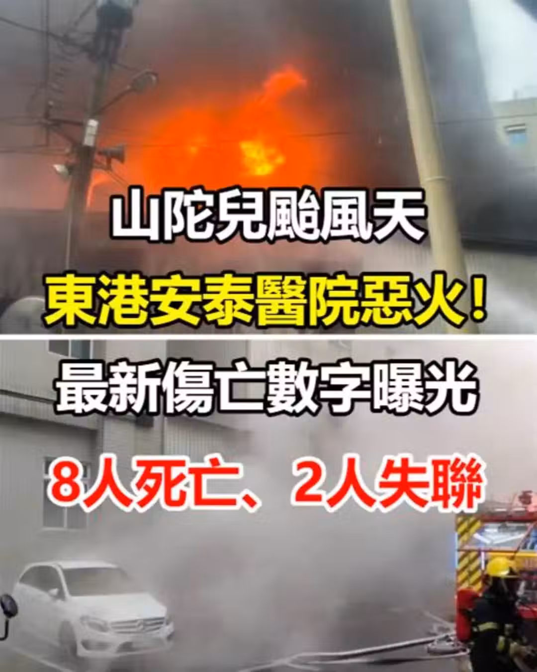 快訊/山陀兒颱風天東港安泰醫院惡火!最新傷亡數字曝光,8人死亡、2人失聯