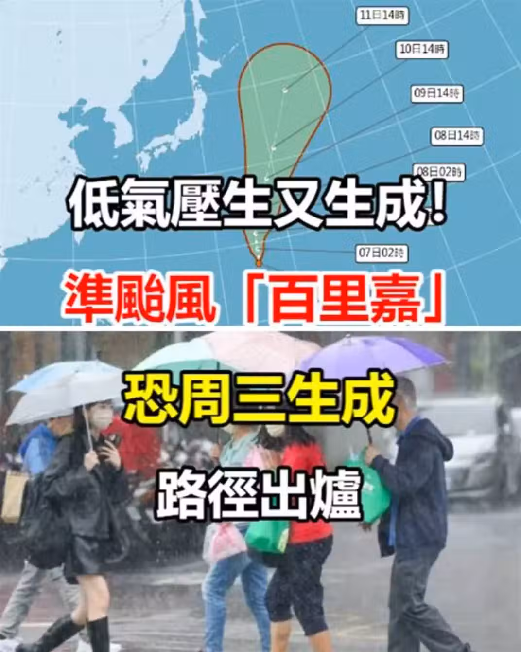 快訊/低氣壓生又生成!准颱風「百里嘉」恐周三生成,路徑出爐