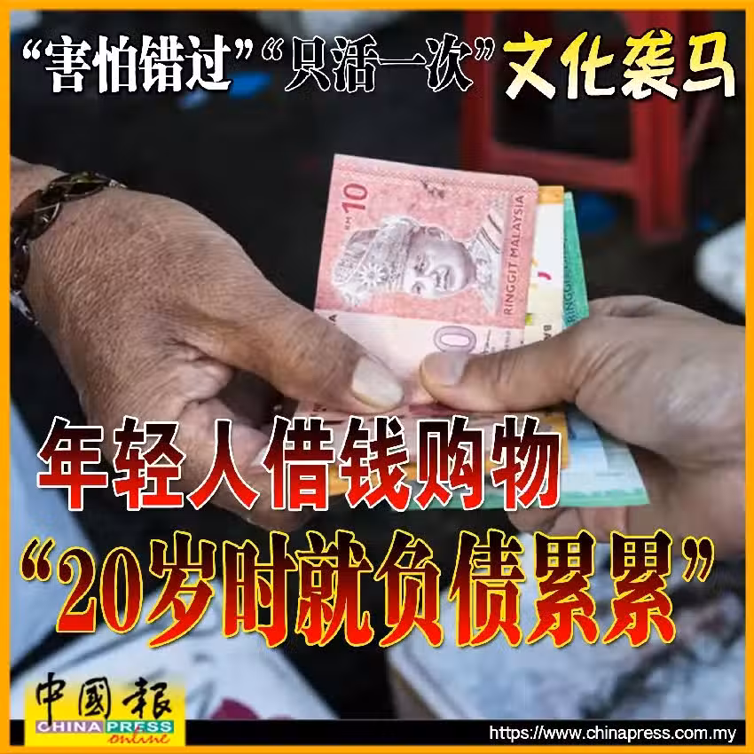 (吉隆坡9日訊)「害怕錯過」(FOMO)和「只活一次」(YOLO)的文化在大馬年輕人中越來越盛行,導致一些人在20歲時就負債纍纍,陷入債務危機。