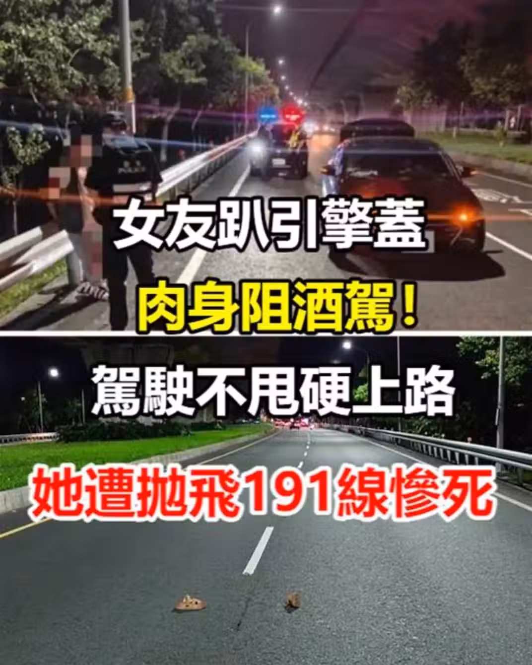 女友趴引擎蓋肉身阻酒駕!39歲女不甩硬上路,她遭拋飛191線慘死
