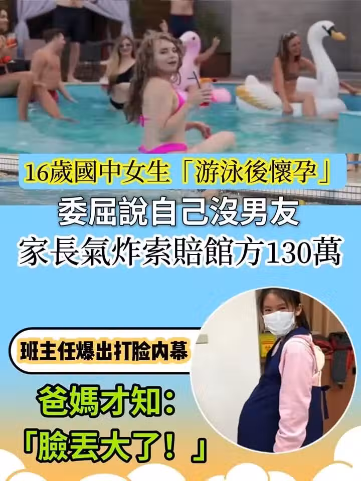 16歲國中女生「 游泳後懷孕」委屈說自己沒男友,家長氣炸索賠館方130萬,班主任爆出打臉內幕!