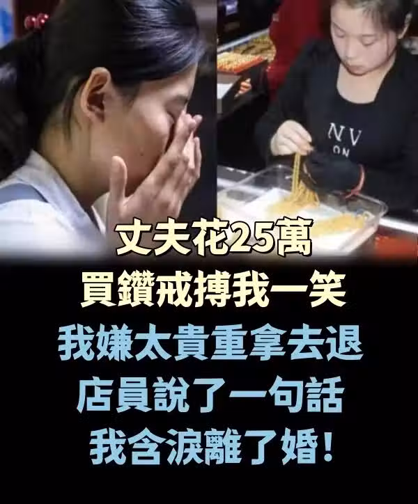 丈夫花25萬買鑽戒搏我一笑,我嫌太貴重拿去退,店員說了一句話,我含淚離了婚~