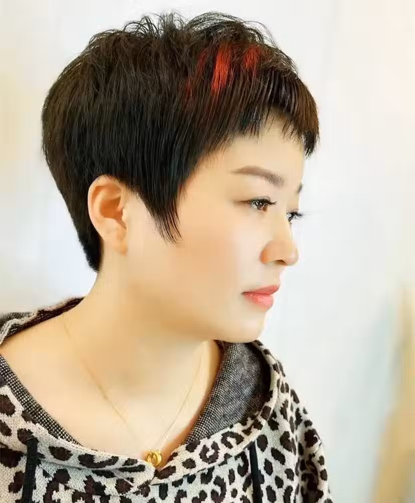 比如這款髮型就是標準的短款破發造型,任何年齡段的女性都可以駕馭,非常減齡。