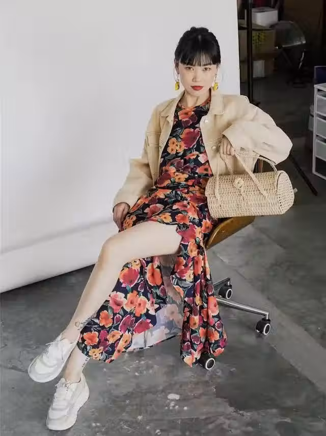 如果你的臀部曲線十分優越,但可千萬不能錯過包臀碎花裙搭配老爹鞋的穿法。包臀的版型可以塑造出優越的腰臀比例,同時增添了性感度,既顯瘦還很有女人味。