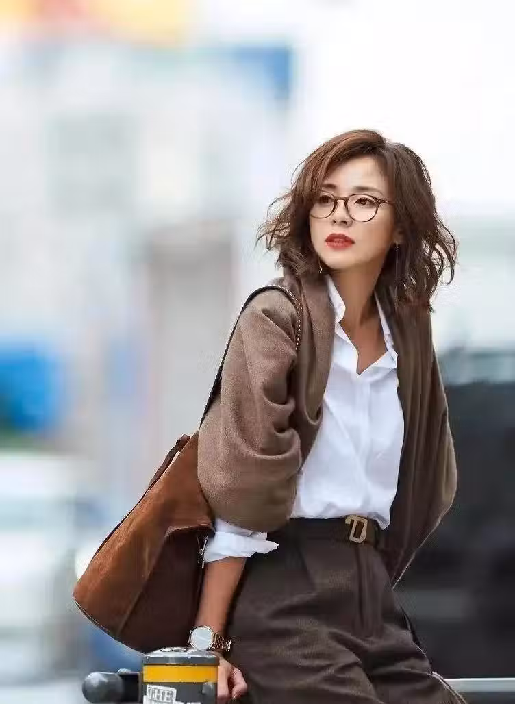 對於追求時髦的中年女人來說,腰帶也是不可缺少的存在,它可以明確腰線位置,增添時尚看點,讓整個造型變得幹練利落起來,猶如下面這身搭配。