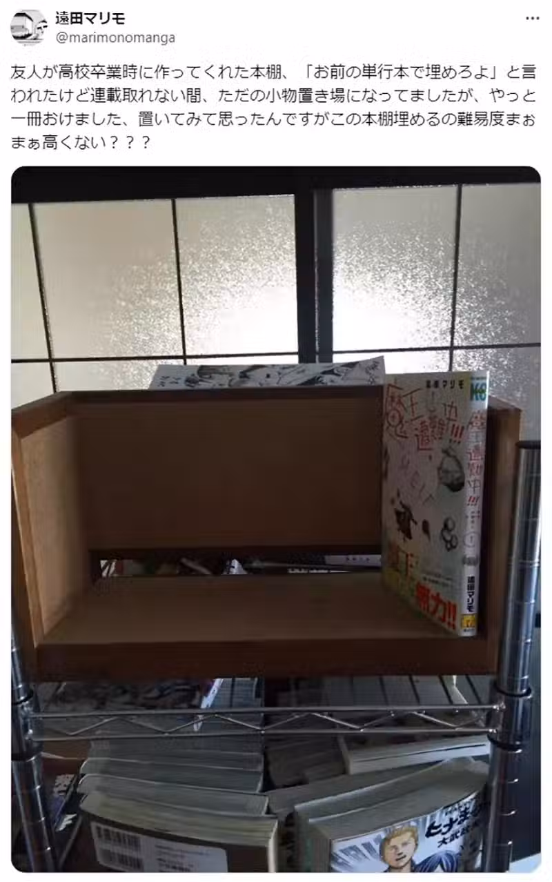《漫畫家遠田マリモ》實現了跟高中朋友的約定,終於靠著自己出的單行本塞滿書架了
