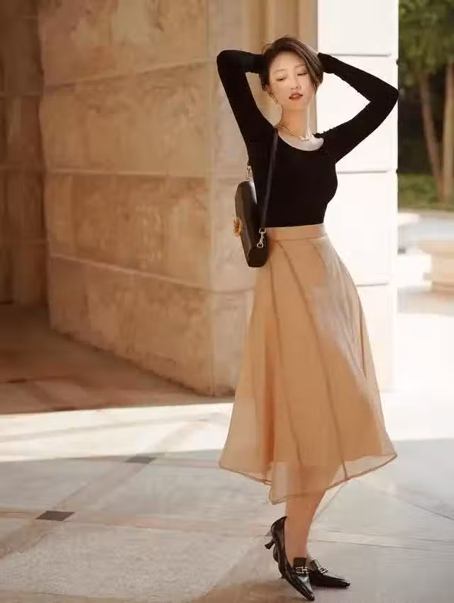「裙子+樂福鞋」的組合更具優雅知性的氣質,整體造型中更添柔美氣質,溫柔感爆棚!這樣的搭配尤其適合春夏季節來選擇,女神范兒十足,隨便一搭出街就能斬獲超高回頭率!