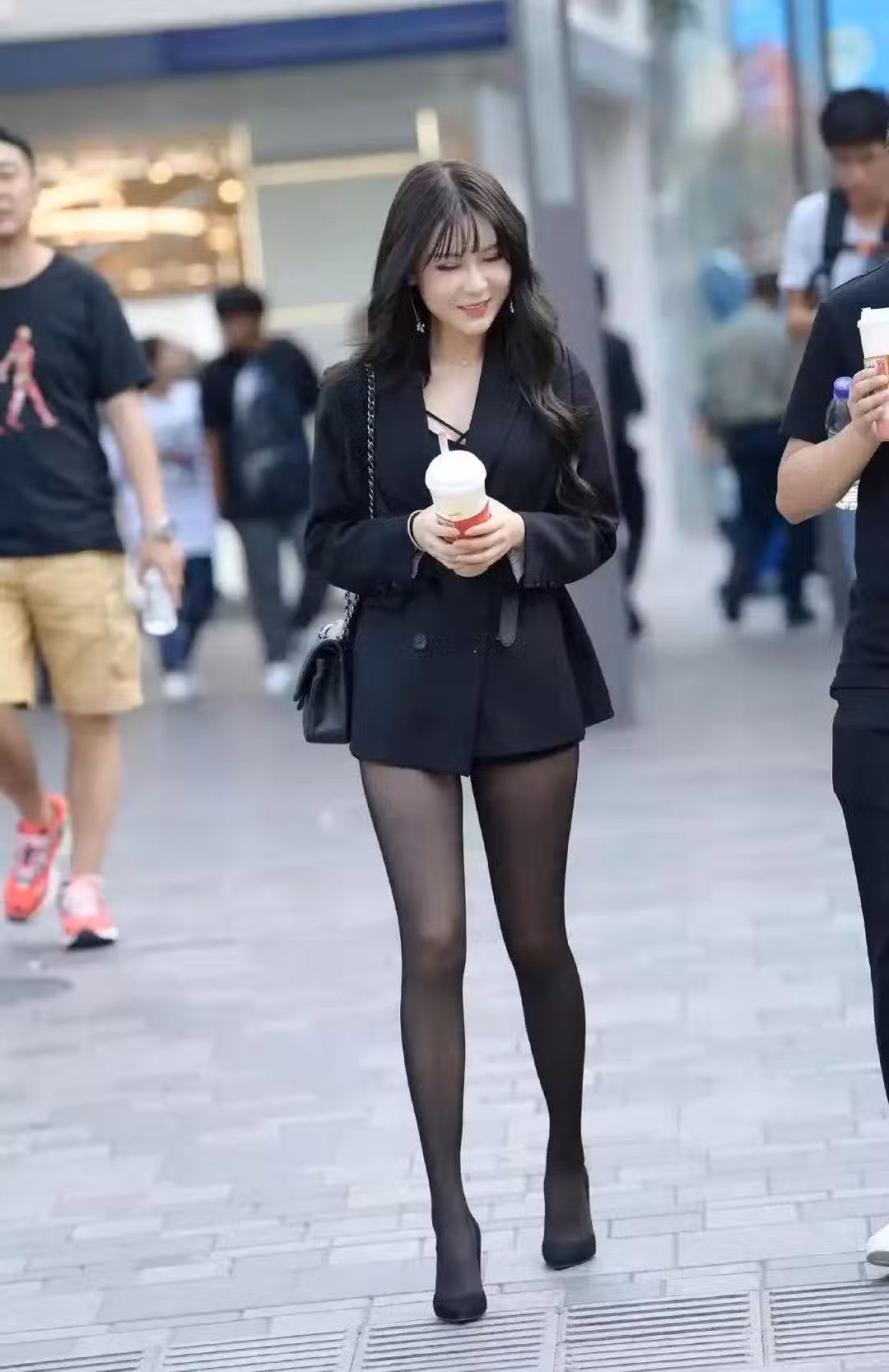 正確的打開方式:黑絲搭配收腰款長大衣