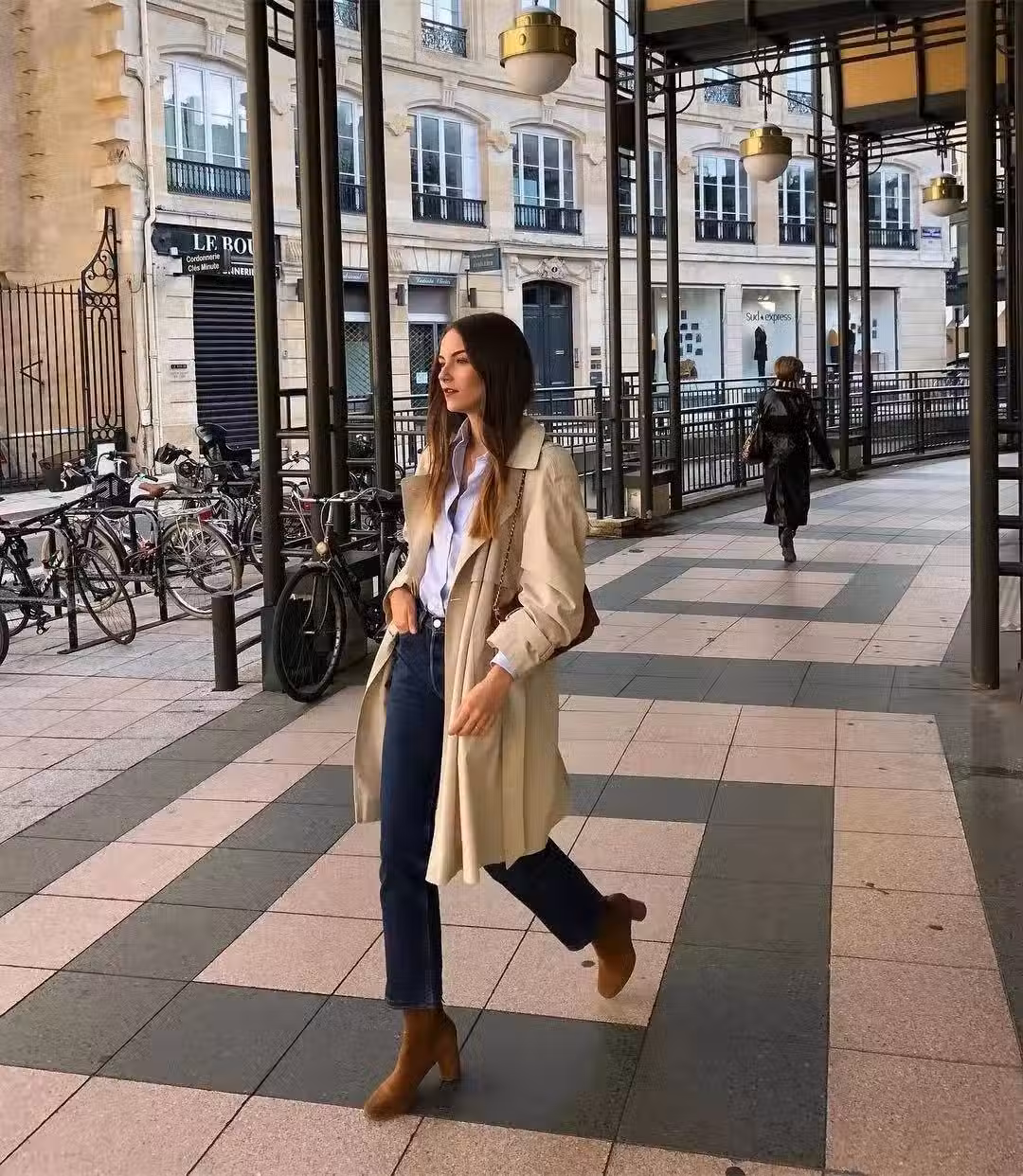 首先 外套的長度最好不要超過腳踝,在小腿中部左右最佳;其次就是選擇一雙無痕靴來搭配,讓下半身看上去更加輕盈,鞋跟的高度與款式還能拉長整體的線條,纖細又顯高。
