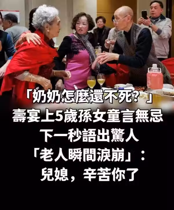 「奶奶怎麼還不死!」壽宴上5歲孫女童言無忌,下一秒語出驚人,老人瞬間老淚縱橫 :兒媳,辛苦你了