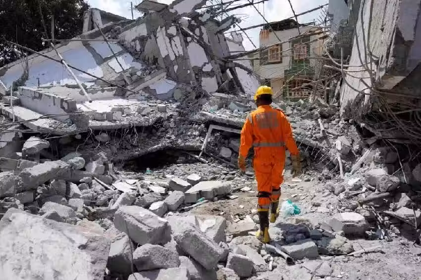 偷工減料!7層違建大樓「突然瞬間崩解」工人全被埋 救援發現「至少5人離世」還有多人被埋