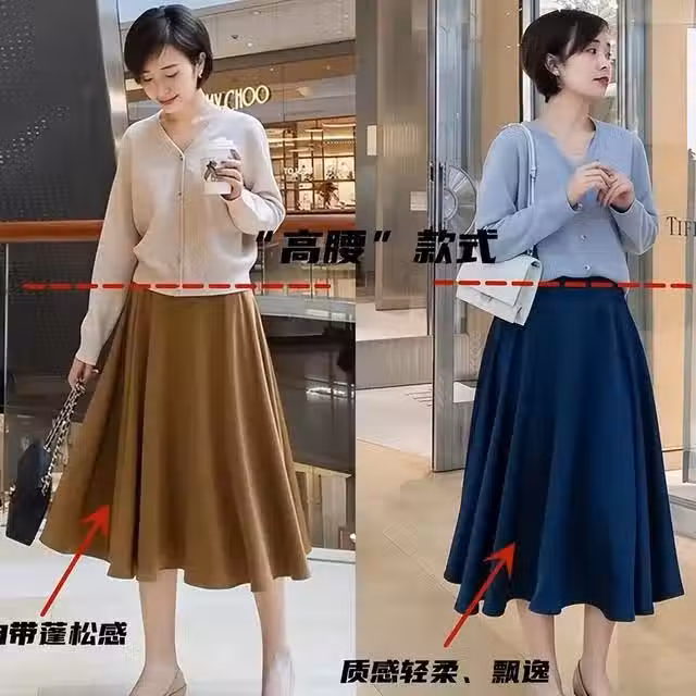 挺括的A字型裙子在行走時能夠產生自然的擺動效果,這種動態感為整體造型增添了輕盈和活力。與緊身裙或包臀裙相比,A字型裙子更加寬鬆舒適,不會給身體帶來束縛感,從而避免了因緊繃而產生的臃腫感。