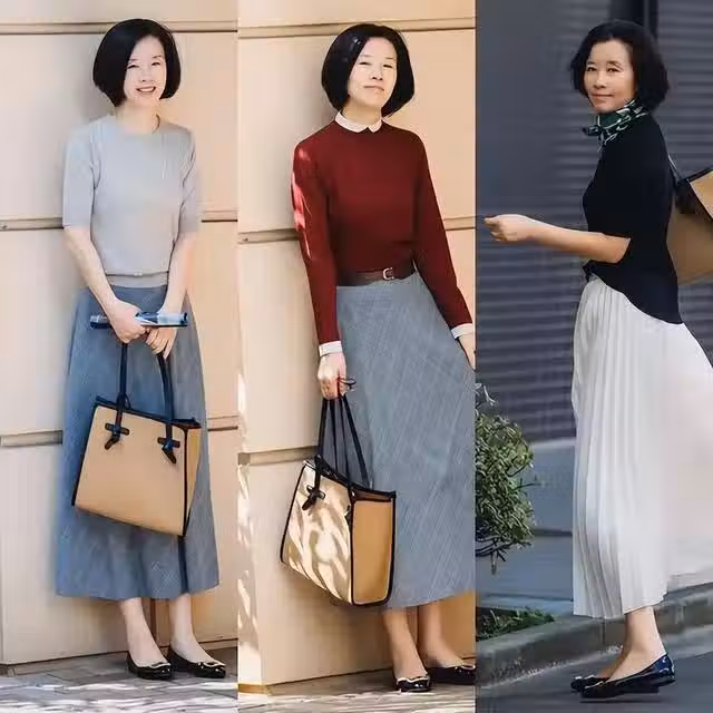 大擺裙也是秋天最常見的選擇,但需要注意的是,當裙擺大的時候,材質就一定要柔順且具有良好的垂感。柔順的材質能夠順應身體曲線自然下垂,形成流暢的線條,減少因裙擺過大而產生的橫向擴張感。