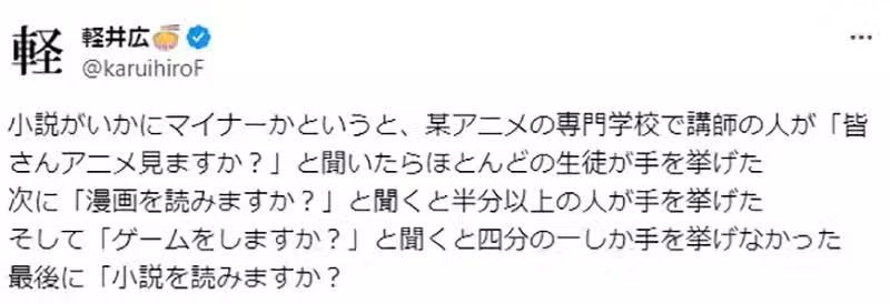 《輕小說作家輕井廣》感嘆看小說淪落成了超小眾興趣