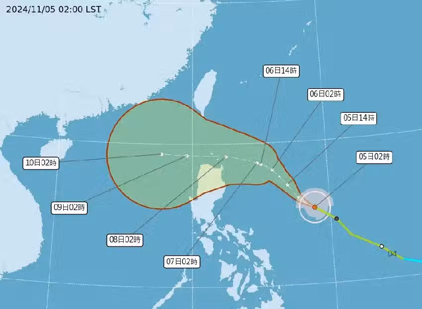 至於銀杏在上午2點時,仍在鵝鑾鼻東南方1140公里海面位置,即便升級中台,但路徑已有所偏移,故侵入台灣的機率不高,海警亦是如此,僅本周后半段可能因此有間接影響,但災害生成的可能性偏低。