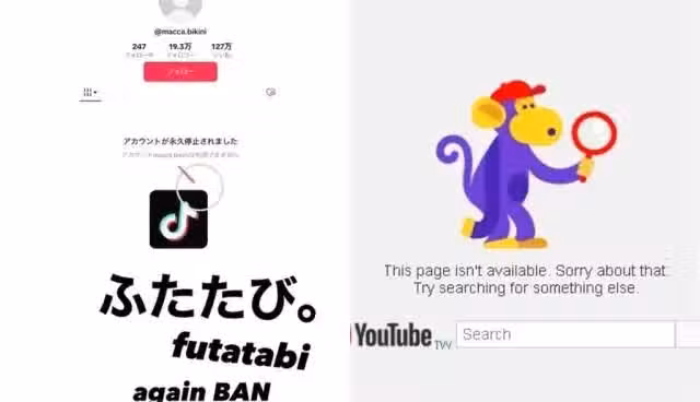 值得注意的是,首先封殺了「教主」日本網美macca,她的帳戶擁有百萬粉絲,當初因為這類踩紅線視頻而紅到中國台灣,現在帳戶被封殺已經沒有辦法瀏覽到,TikTok帳戶也被凍結了,目前只剩下「まっかの歌」的頻道。