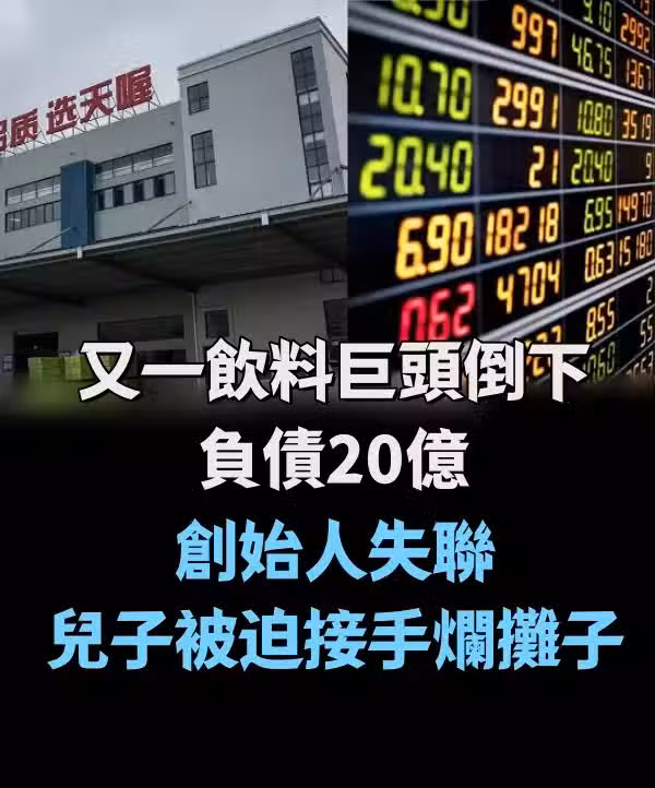 又一飲料巨頭倒下,負債20億,創始人失聯,兒子被迫接手爛攤子!