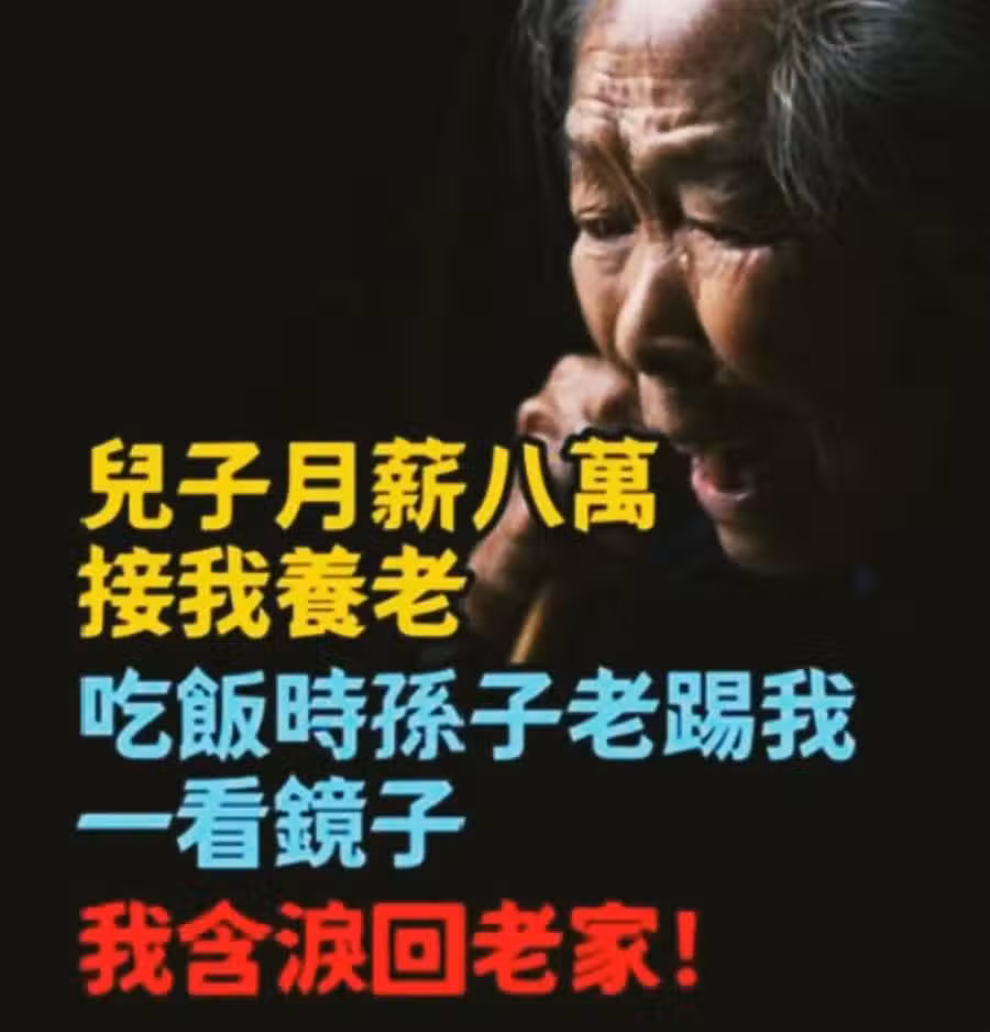 兒子月薪八萬接我養老,吃飯時孫子老踢我,一看鏡子 我含淚回老家!!