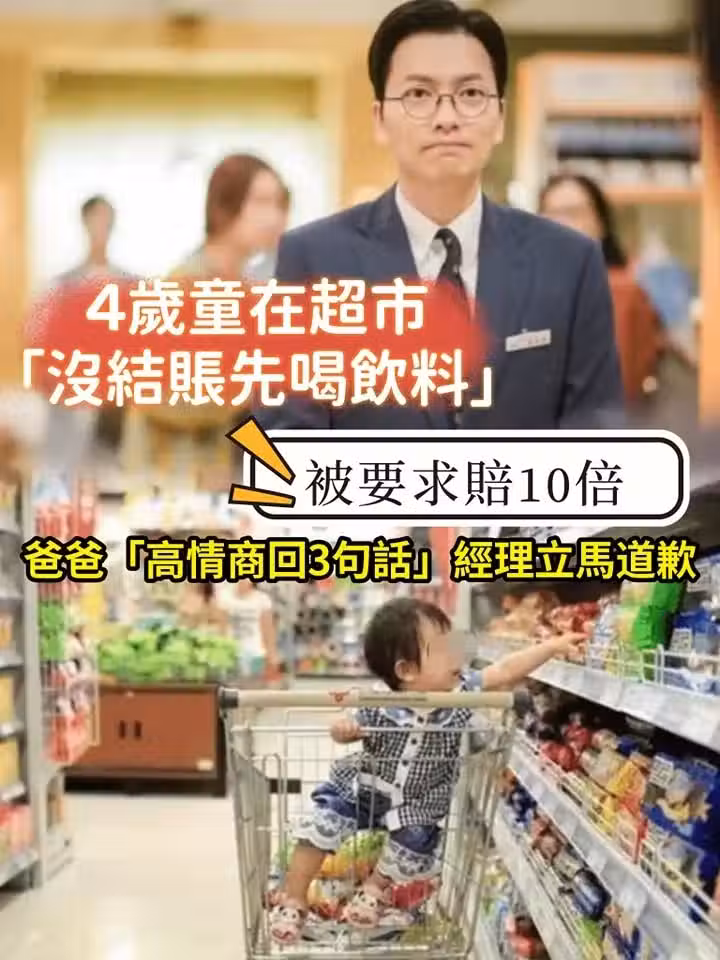 4歲小孩在商店「未付款先喝飲品」被要求賠償10倍 父親「高智商回應3句話」經理立刻致歉