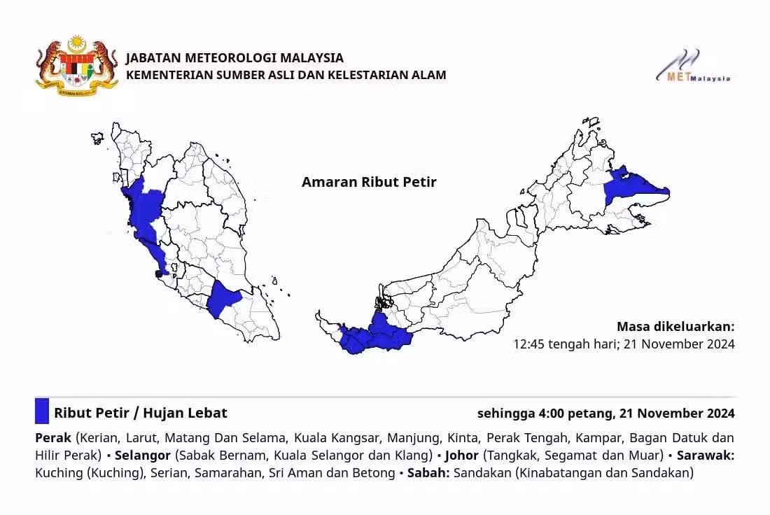 大馬雷雨最新情報,這5州多區今天將出現大雨!