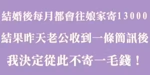 婚後每個月我往娘家寄一萬三千元,結果看到昨天老公收到的一條簡訊後,我決定從此不寄一毛錢~