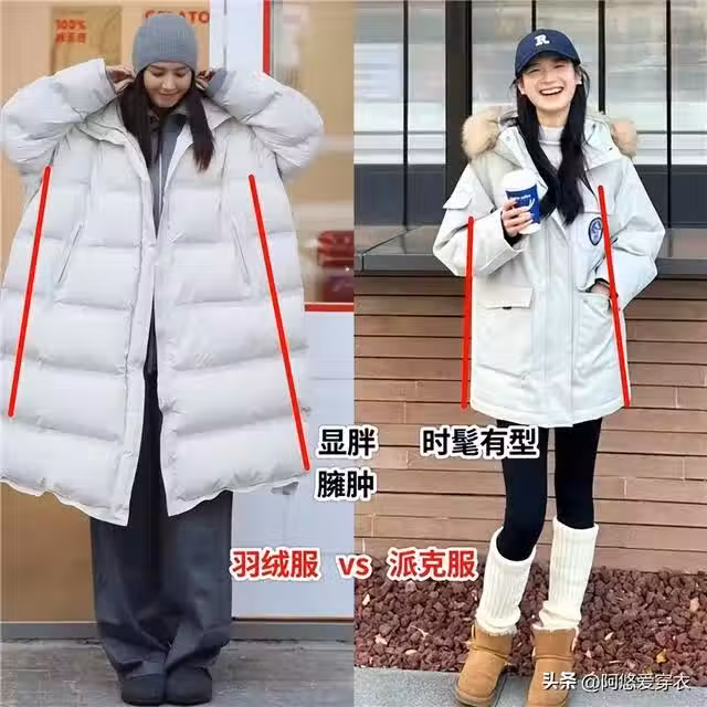這款外套和羽絨服最大的不同就是膨脹感沒那麼強,因此也就擺脫了顯胖的困境,它通常採用防風防水的面料,內襯則填充了厚實的羽絨或毛皮,確保在極端天氣下也能保持溫暖,現如今派克服的外觀設計簡約而不失時尚感,無論是經典的純色還是時尚的撞色設計,都能讓你在冬季人群中脫穎而出。