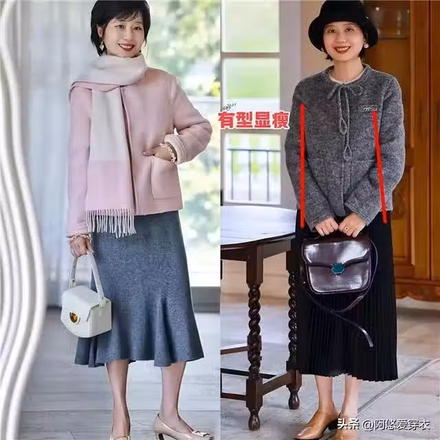中老年女人穿裙子時,儘量不要配大衣、羽絨服,換成這幾種更洋氣