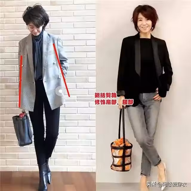 而關於整體的版型,大家也別覺得緊身款才顯瘦,更推薦你穿適當寬鬆的外套,相比於緊身的設計,適度寬鬆的版型更為舒適且遮肉。這種版型能夠很好地遮蓋中年女性可能存在的身材問題,如小肚腩或臀部線條等,還可以帶來輕鬆舒適的感覺,適合各種場合穿著。