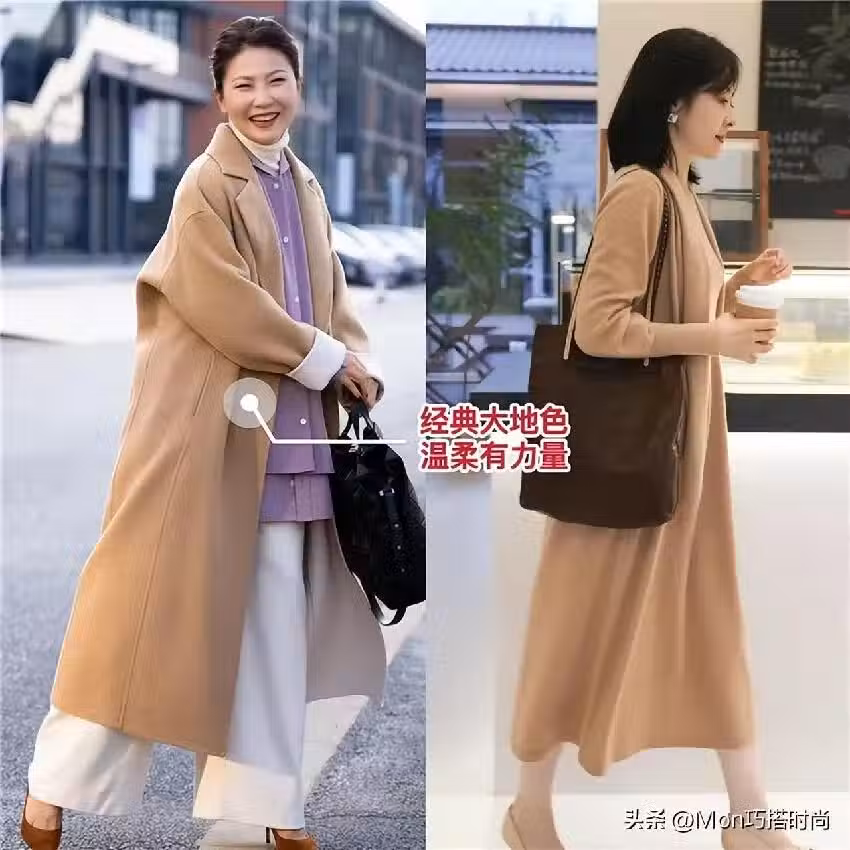 大地色在秋冬季節很常見,可就是這樣常見的色彩,其實特別高級顯氣質,像普通人如果要穿大地色,可以挑選卡其色,棕色或者是駝色。