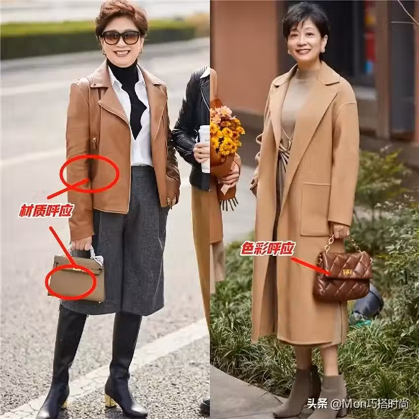 如果你穿的是一件溫暖的駝色大衣,那麼一個同色系的皮質手提包就是絕佳的選擇,這樣的搭配,既和諧又高級,讓人一眼就能感受到你的品味和氣質。[建議.03]根據場合選包包,別隨便背