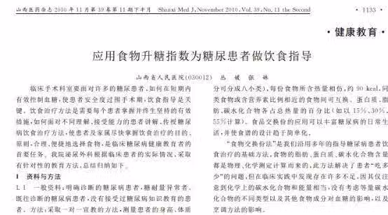 [1]叢媛.應用食物升糖指數為糖尿患者做飲食指導, 山西醫藥雜誌(下半月刊) ,2010-11-25